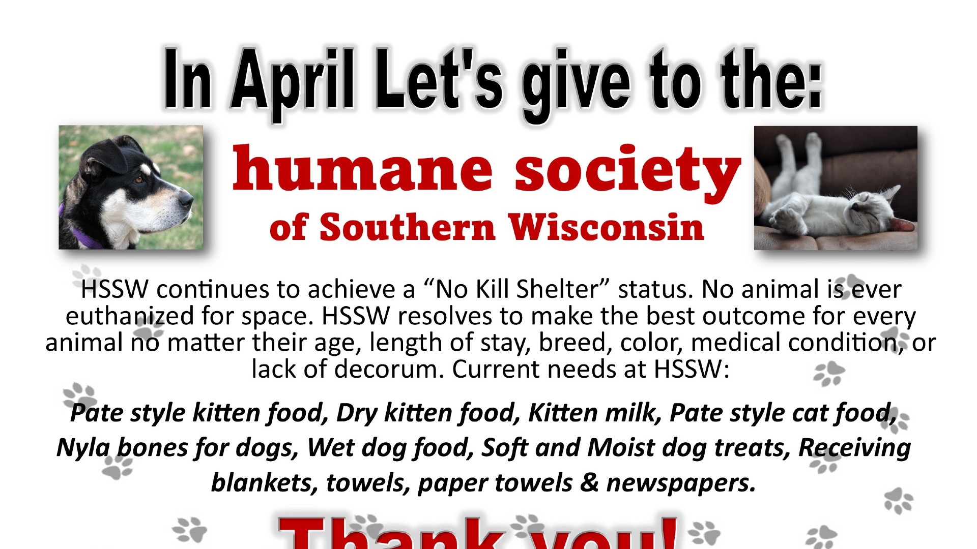 This April, let’s give to the Humane Society of Southern Wisconsin!