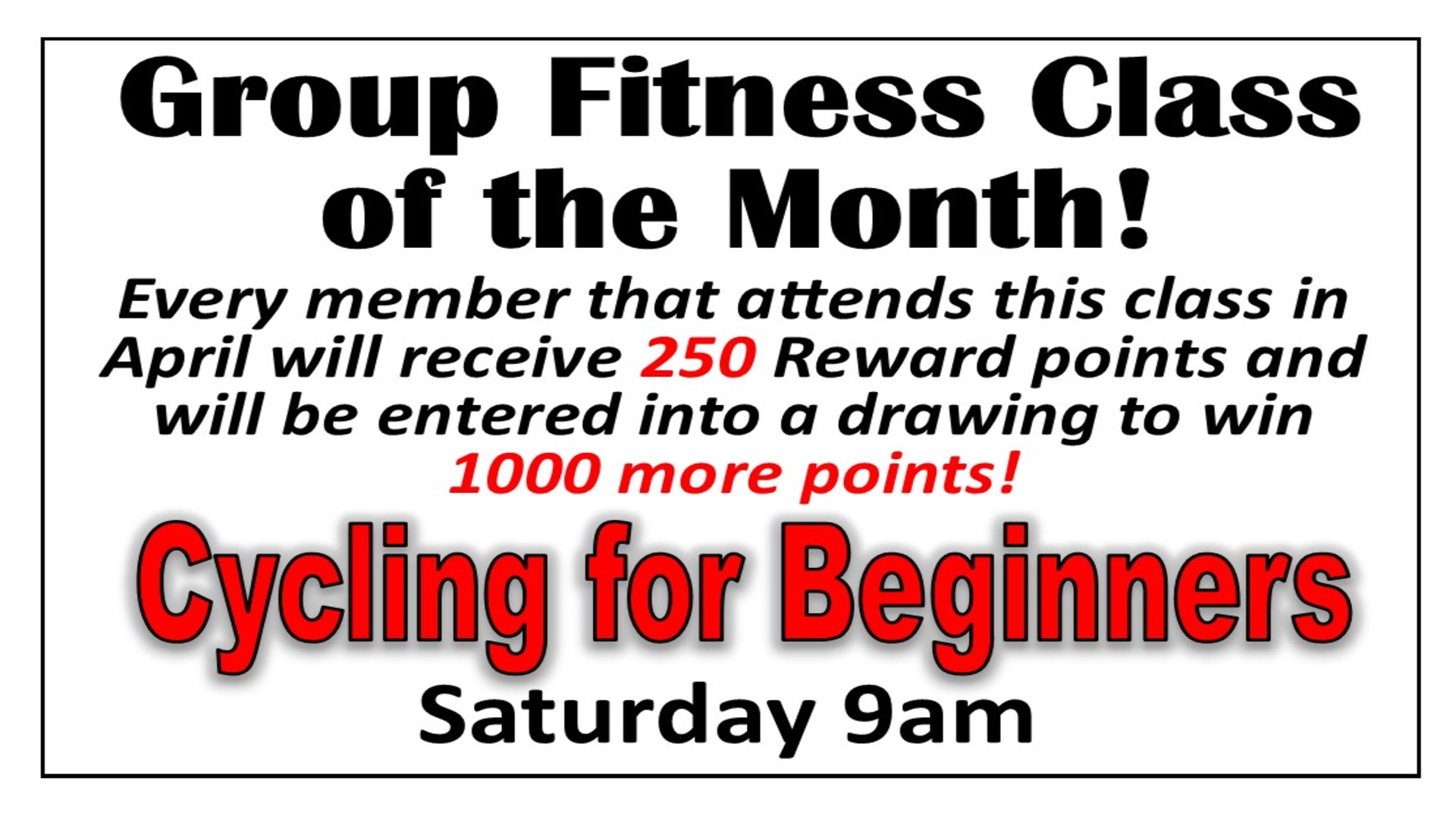 New to cycling? Join us every Saturday at 9 am for the perfect starting point! Show up, ride, and score 250 reward points plus a shot at winning 1000 more.